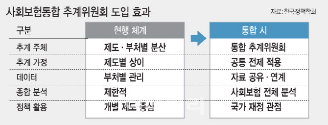 이에 보고서는 국민연금·건강보험·고용보험 등 주요 사회보험의 장기 재정 전망을 총괄하는 ‘사회보험 통합추계위원회’ 도입을 제안했다. 위원회에 자료 제출 요구권을 부여하고, 부처 간 데이터를 공유해 공통된 전제와 기준 아래 재정 추계를 수행하자는 것이다. 제도 운영을 통합하자는 것이 아니라, 재정 전망만이라도 일관된 틀에서 함께 살펴보자는 취지다.