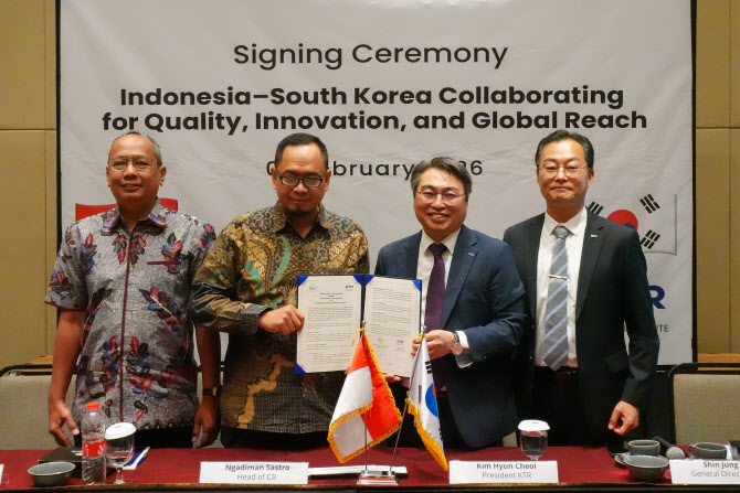 KTR은 김현철 KTR 원장이 2일 인도네시아 자카르타에서 현지 공인인증기관 IGS의 응아디만 사스트로 대표와 이 분야 SNI 인증 협력 업무협약을 했다고 밝혔다. SNI 인증은 한국의 KS처럼 현지에 제품을 유통하기에 앞서 취득해야 하는 필수 인증이다.