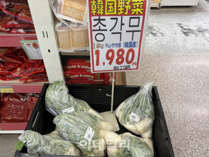 | 한국장터에서 판매중인 ‘총각무’(사진=이데일리 김은비 기자) |