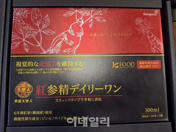 | 일본 동원재팬 온라인에서 판매중인 건강기능식품 인증 홍삼 제품(사진=이데일리 김은비 기자) |