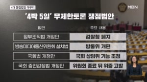 【 앵커멘트 】 4대 쟁점법안을 놓고 국회 본회의장에서 4박 5일간 이어졌던 무제한 토론과 표결이 어젯밤(29일) 모두 마무리됐습니다. 이재명 대통령은 어제(29일) 본회의를 통과한 국회 증언감정법 등 4대 쟁점법안을 오늘(30일) 국무회의에서 심의 의결할 전망인데요. 여야의 입장 차가 워낙 커 갈등의 불씨는 여전합니다. 이병주 기자입니다.【 기자 】 국회 증언감정법에 대한 무제한 토론 필리버스터가 24시간 지난 어제 저녁 8시 45분쯤, 민주당 주도로 토론이 종료되며 4박 5일간 이어져온 본회의의 여야 대치도 일단락됐습니다.▶ 인터뷰 : 우원식 / 국회의장- "무제한토론 종결 동의가 가결됐으므로 무제한 토론이..