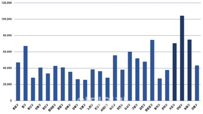 | 서울시 자치구별 사업체수 현황 (그래픽=도시와경제) |