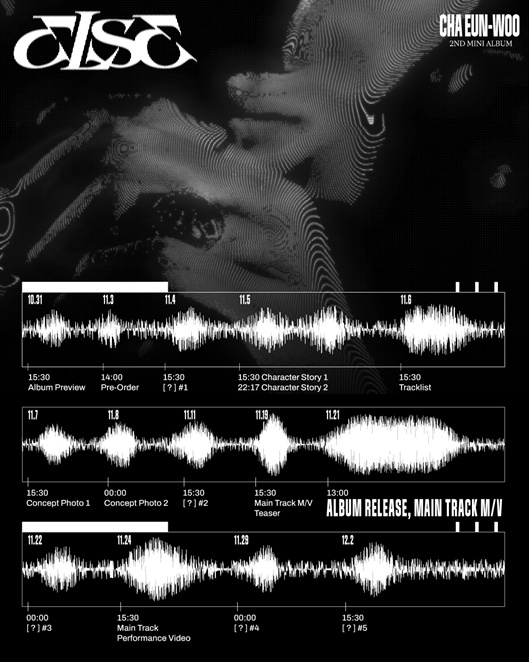 공개된 이미지는 차은우의 다크한 아우라가 단편적으로 담겨 몽환적이면서도 긴장감 있는 무드를 자아낸다. 또한 크고 작은 파동의 다이내믹한 음파 그래픽과 함께 다채로운 콘텐츠를 예고해 팬들의 기대감을 높였다.