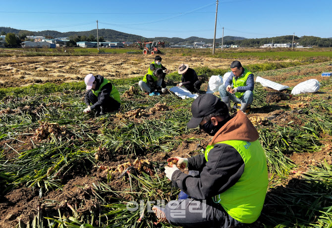 이날 봉사활동에 참여한 축산유통부 직원 10여명은 출하를 앞둔 생강 농가를 위해 수확부터 선별, 운반 등 농작업을 진행했으며, 농가 주변 배수로의 퇴적토와 잡초제거 등 환경개선에도 힘을 보탰다.