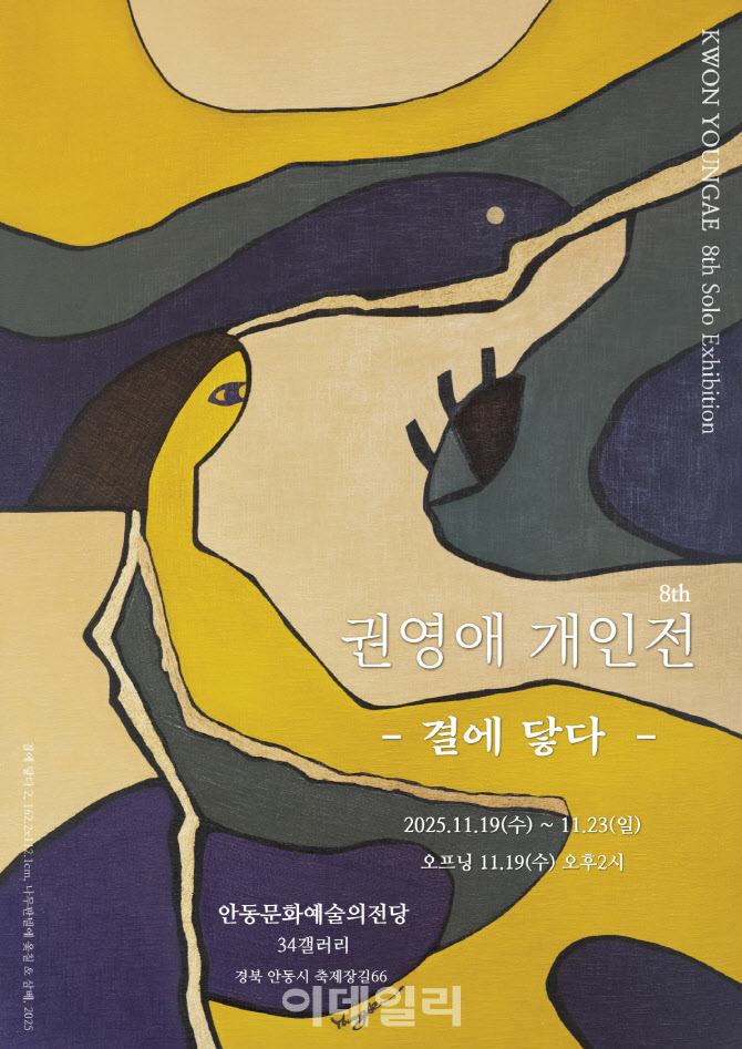 [이데일리 김태형 기자] 옻칠회화 권영애 작가의 여덟 번째 개인전 〈결에 닿다_Reaching the Grain〉가 11월 18일부터 23일까지 안동문화예술의전당 3층 갤러리에서 열린다.