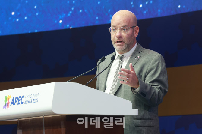 [이데일리 노진환 기자] 에릭 에벤스타인 틱톡 공공정책 총괄이사가 30일 경북 경주 예술의전당에서 열린 아시아태평양경제협력체(APEC) 정상회의 최고 경영자(CEO) 서밋(Summit)에서 '세션 11 : 신뢰 기반 성장으로 아태지역 디지털 시장 개발'을 주제로 발표하고 있다.