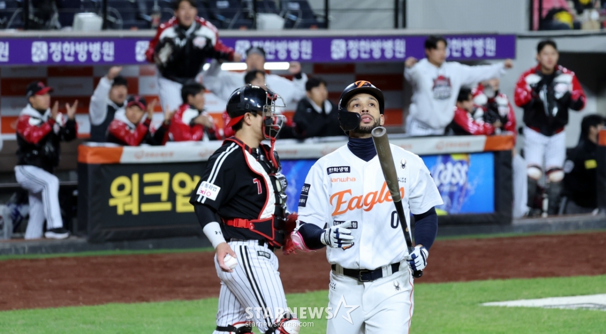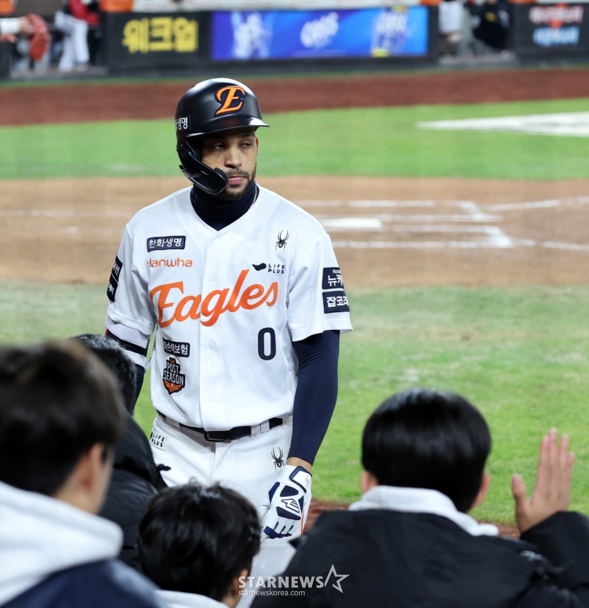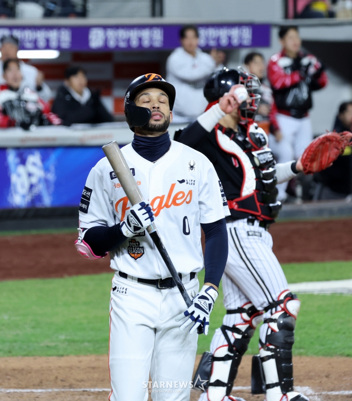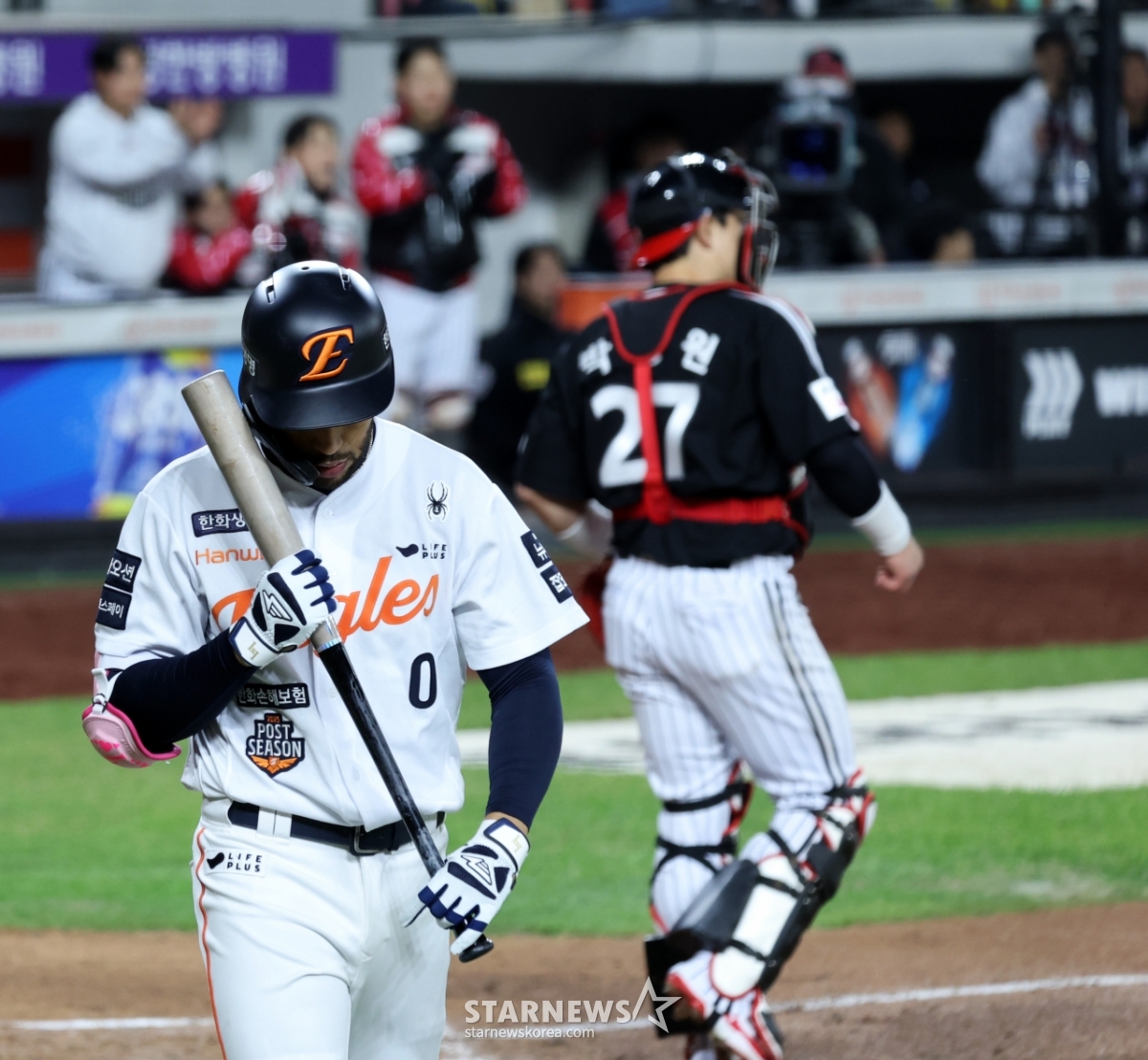 한화 선리베라토가 30일 대전한화생명볼파크에서 열린 2025KBO리그 한화이글스와 LG트윈스의 한국시리즈4차전에서 범타로 물러나고 있다. 2025.10.30.