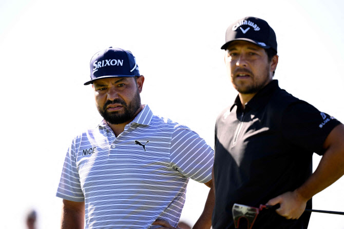 | 샌디에이고 주립대 동문인 J.J 스펀(왼쪽)과 잰더 쇼플리는 30일(한국시간) 미국 캘리포니아주 샌디에이고 인근 라호야의 토리파인스 골프클럽에서 열린 PGA 투어 파머스 인슈어런스 오픈 첫날 나란히 오버파 성적을 적어내며 무거운 출발을 시작했다. (사진=AFPBBNews) |